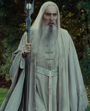 Il d'ailleurs agacé au début de la rencontre lorsque Gandalf le salue avec les mots “Oui, je suis venu, dis-je. Je suis venu requérir ton aide, Saruman le Blanc.”
