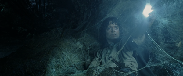 Ils arrivent dans une caverne. Dans la grotte ils perdent Gollum. Ils distinguent une créature dans l’obscurité et Sam pousse Frodon à utiliser la fiole remise par Galadriel: