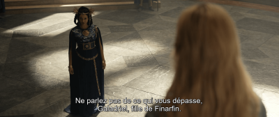 Alors que Galadriel parle avec Miriel et la provoque. Miriel répond: Ne parlez pas de ce qui vous dépasse, Galadriel, fille de Finarfin.